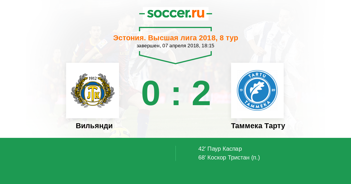 Матчи Эстония. Высшая лига 2018