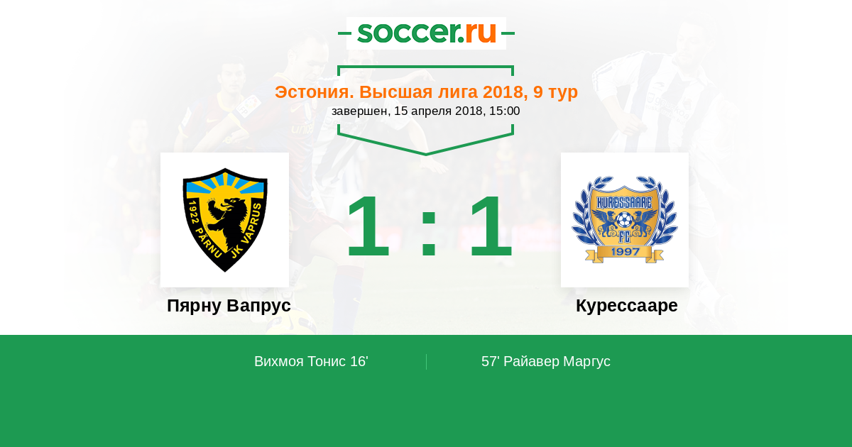 Матчи Эстония. Высшая лига 2018