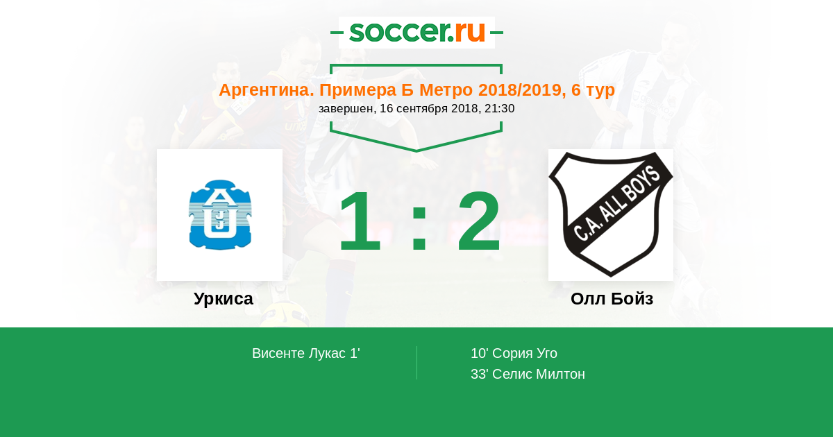 Матчи Аргентина. Примера Б Метро 2018/2019
