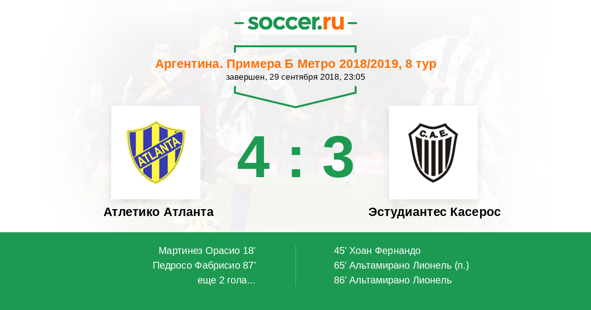 Матчи Аргентина. Примера Б Метро 2018/2019