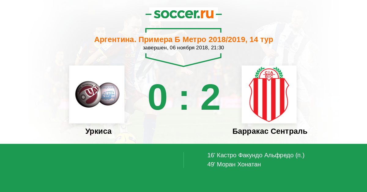 Матчи Аргентина. Примера Б Метро 2018/2019