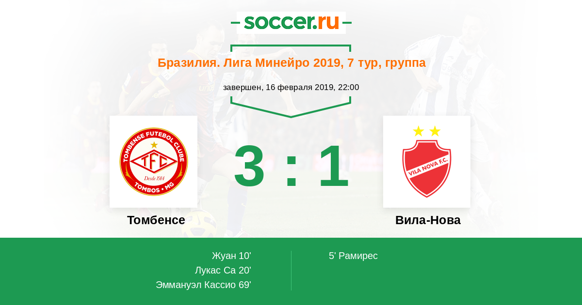 Матчи Бразилия. Лига Минейро 2019