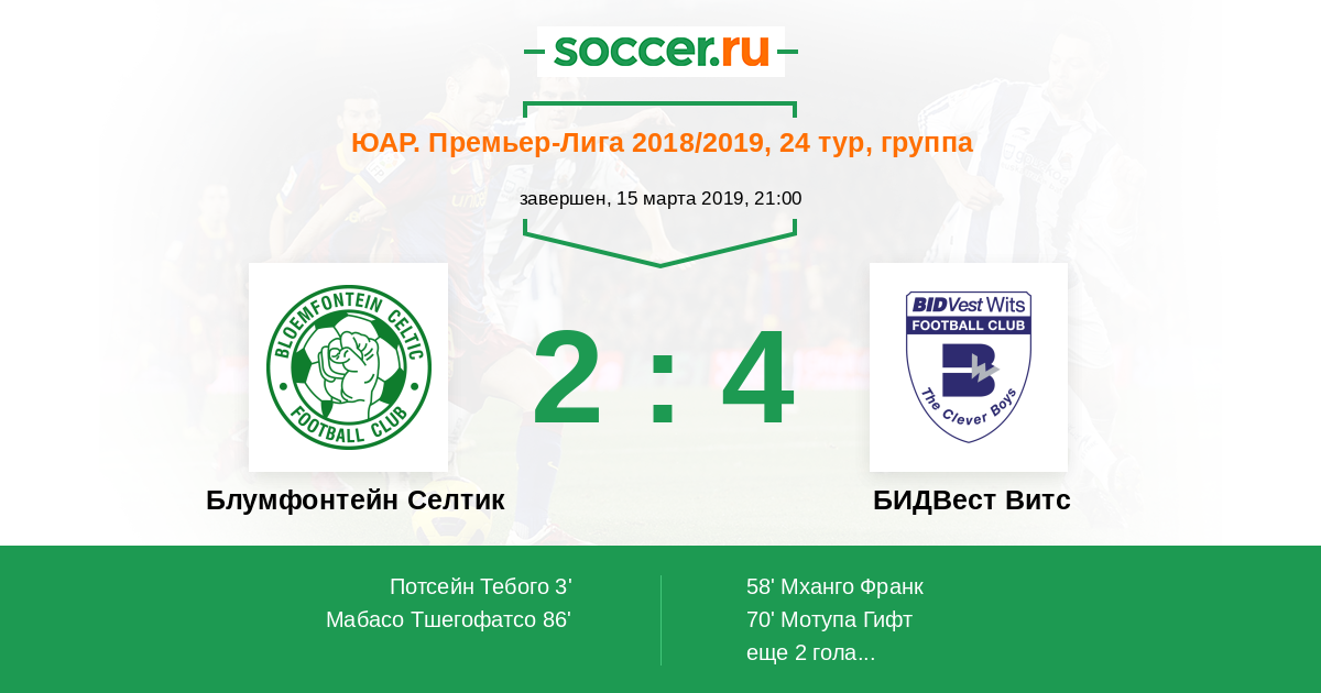 Матчи ЮАР. Премьер-Лига 2018/2019