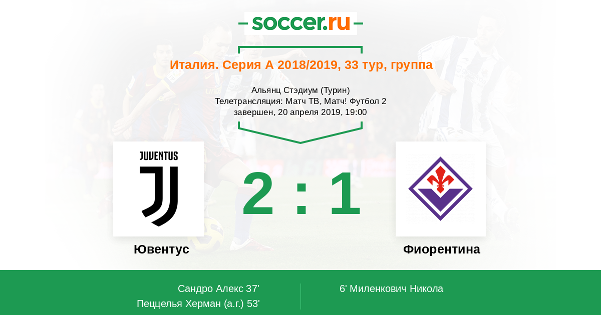 Отскочил Ювентус в первом тайме столько моментов и выходов результативных запарола Фиорентина и видно выдохлись они к концу первого тайма, во втором Ювентус должен дожать 3-1 чую победу Ювентуса...