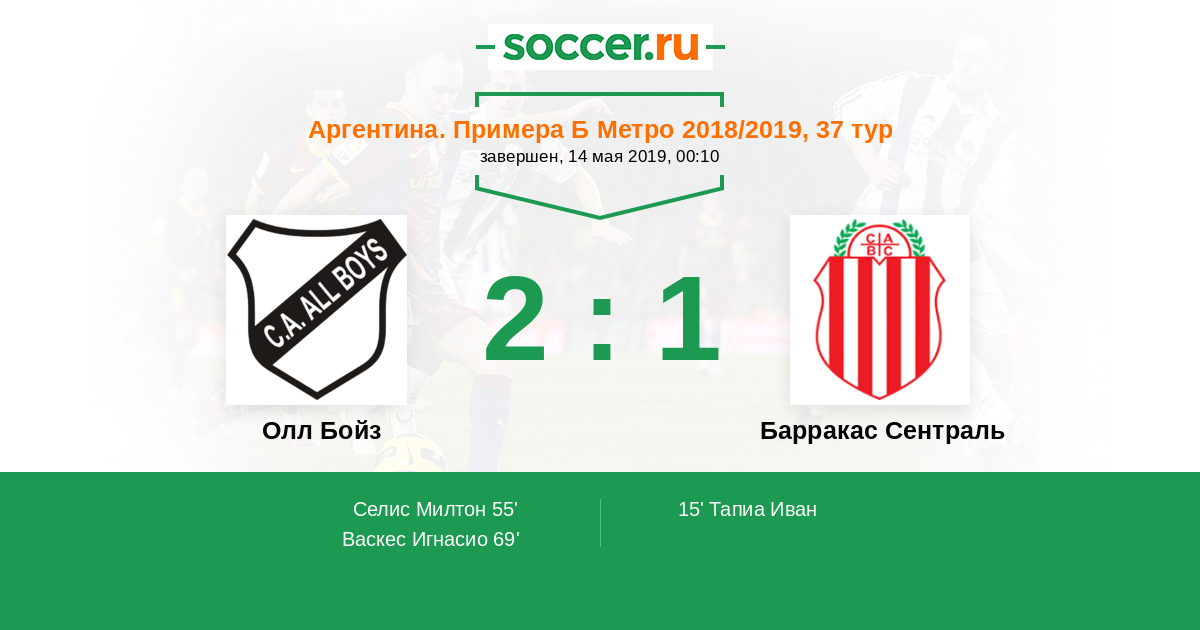 Матчи Аргентина. Примера Б Метро 2018/2019