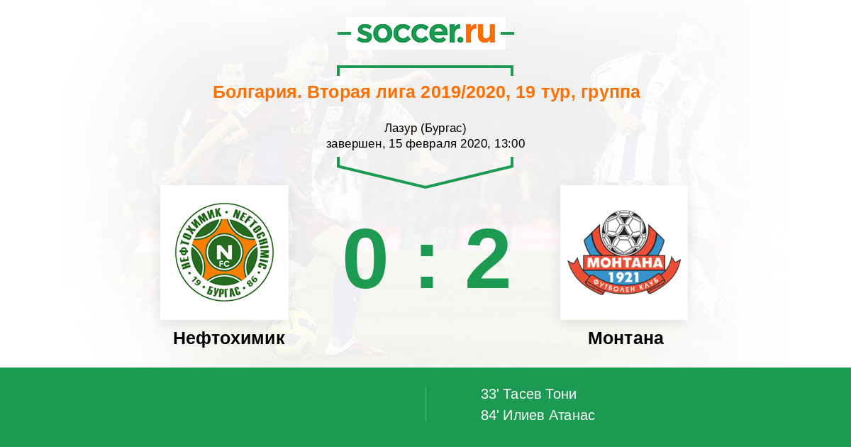Матчи Болгария. Вторая лига 2019/2020