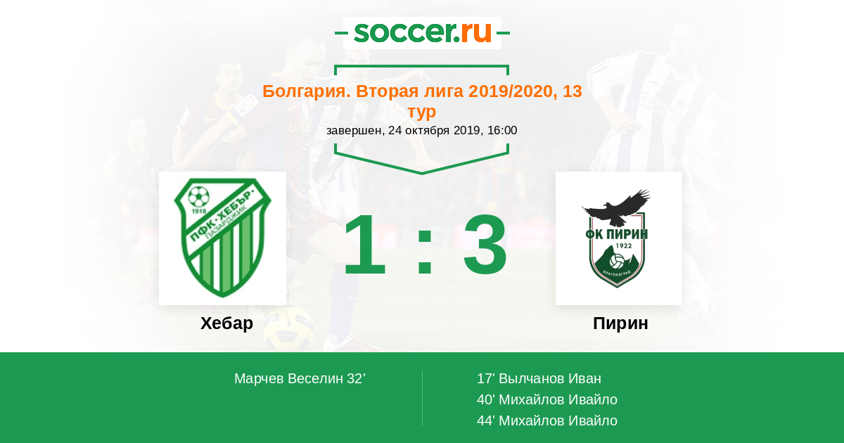 Матчи Болгария. Вторая лига 2019/2020