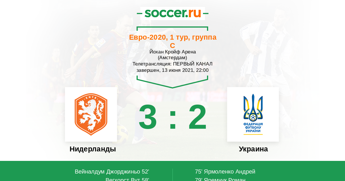 Нидерланды играли в очень атакующий футбол, будто бы следую заветам тотального футбола. Не смотря на некоторые помарки и просчёты в атакующих действиях, заводной апельсин смог создать очень много острых моментов, а также, что очень важно, забить три мяча весьма сильной сборной Украины.