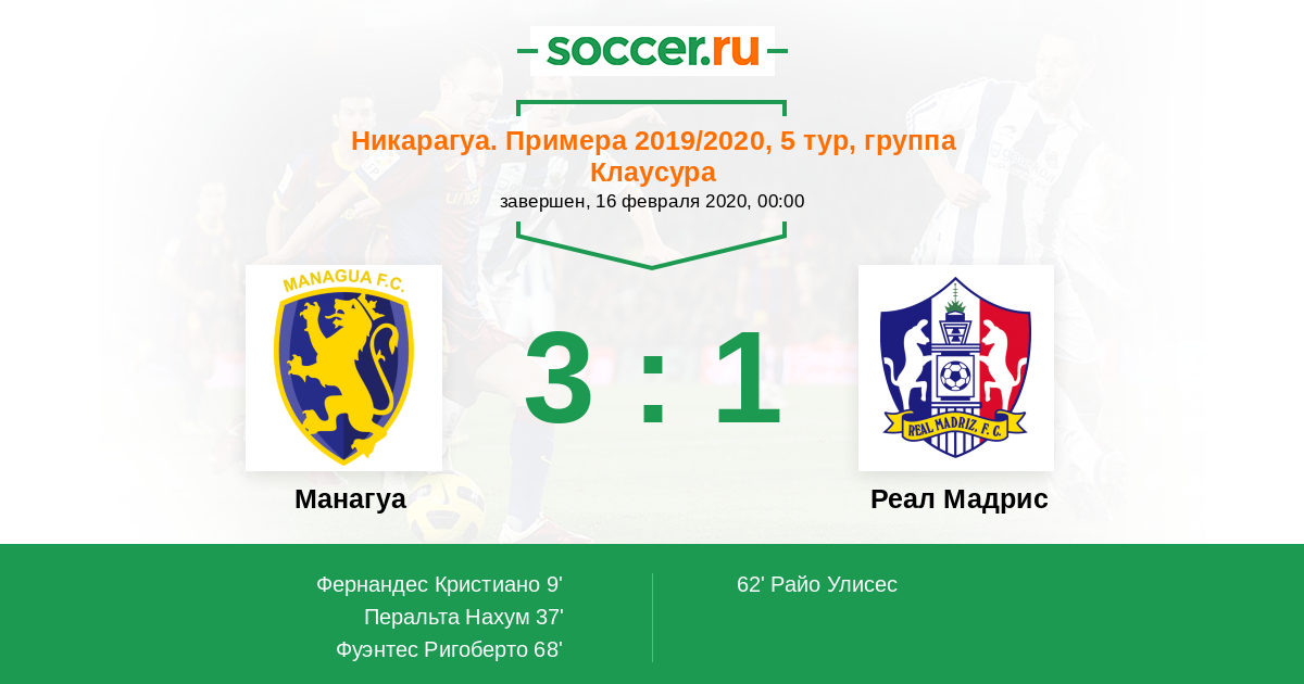 Матчи Никарагуа. Примера 2019/2020