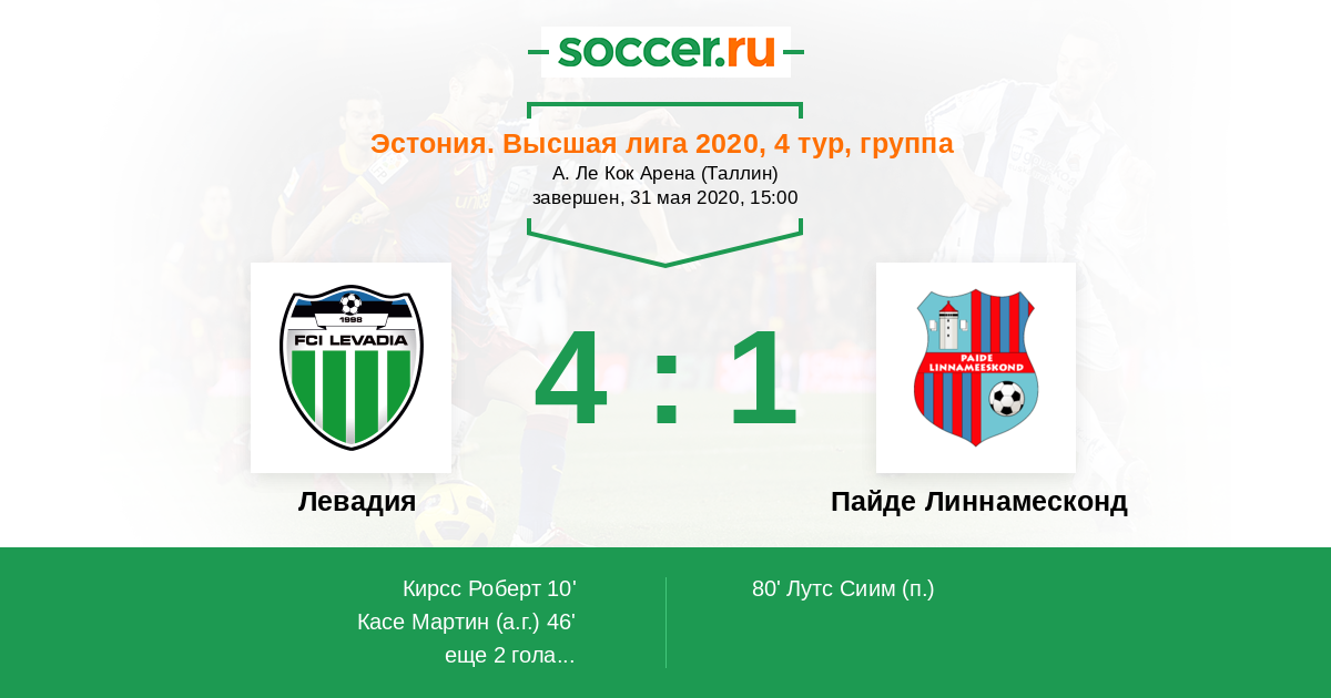 Матчи Эстония. Высшая лига 2020