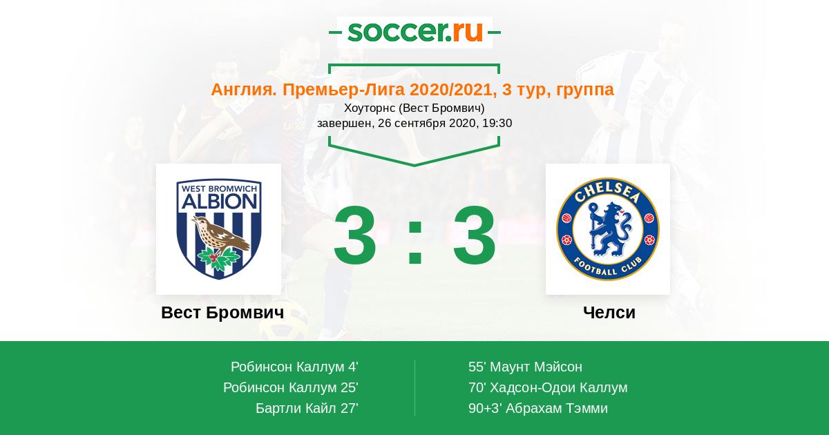 Но, характер у команды есть, и борется она до конца, что уже хорошо. Вест Бром же сам кажется не поверил своей удаче и после 30 минут, только оборонял счёт. Челси конечно нужно налаживать игру в обороне, ну а Вест Бром рад и одному очку на чужом поле... =))