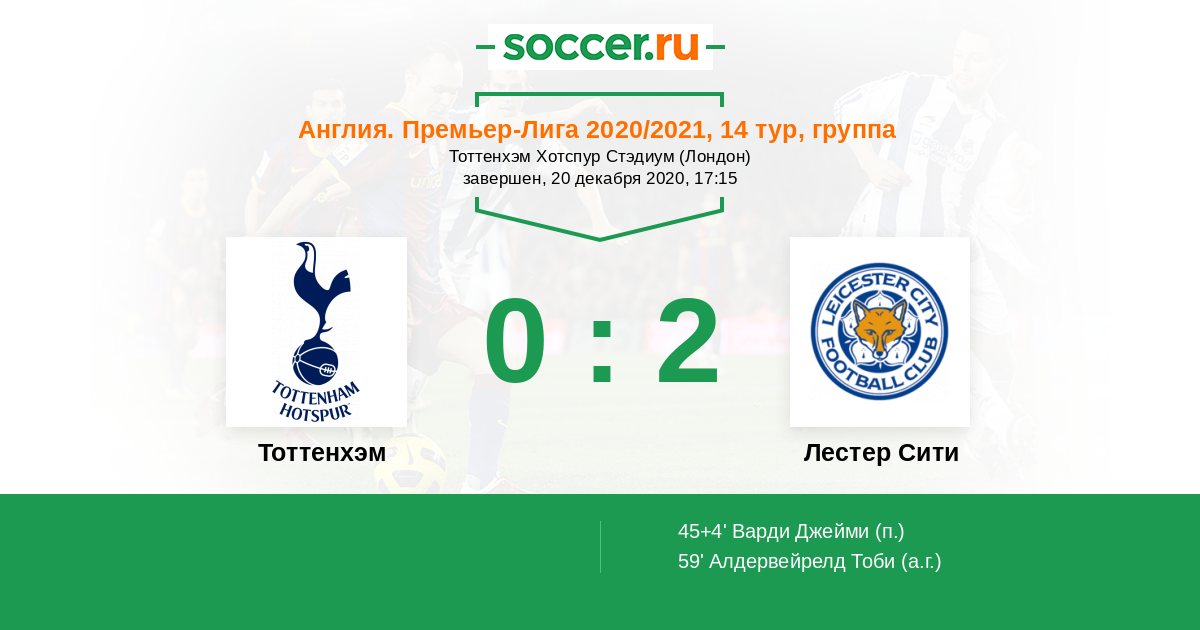 А в целом, не плохой матч, в котором у Тоттена было всего пара моментов, а результат при этом зависит от того сумеют ли игроки "шпор" забить эти редкие моменты. Лестер молодцы - забили даже три, но миллиметры и ВАР отобрали один из голов. С другой же стороны - Лестер всё равно может быть доволен итоговым результатом. =)