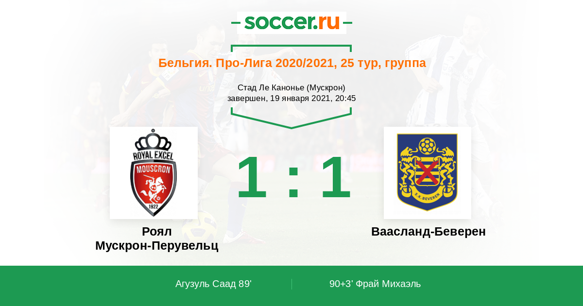 Победа Роял Мускрон-Перувельца или ничья.