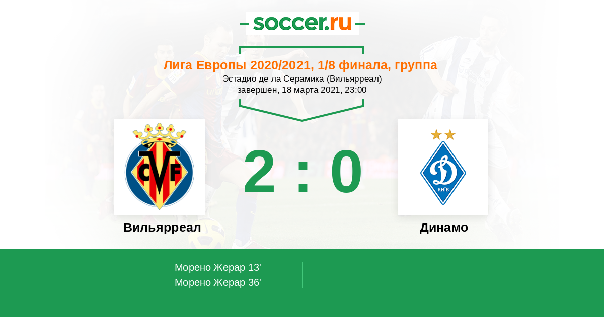 Вильярреал по сумме двух встреч оказался на голову сильнее Динамо.