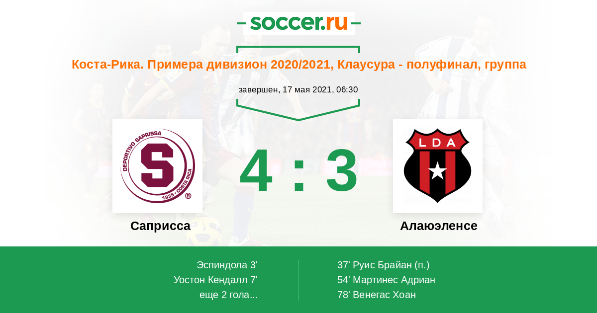Матчи Коста-Рика. Примера дивизион 2020/2021