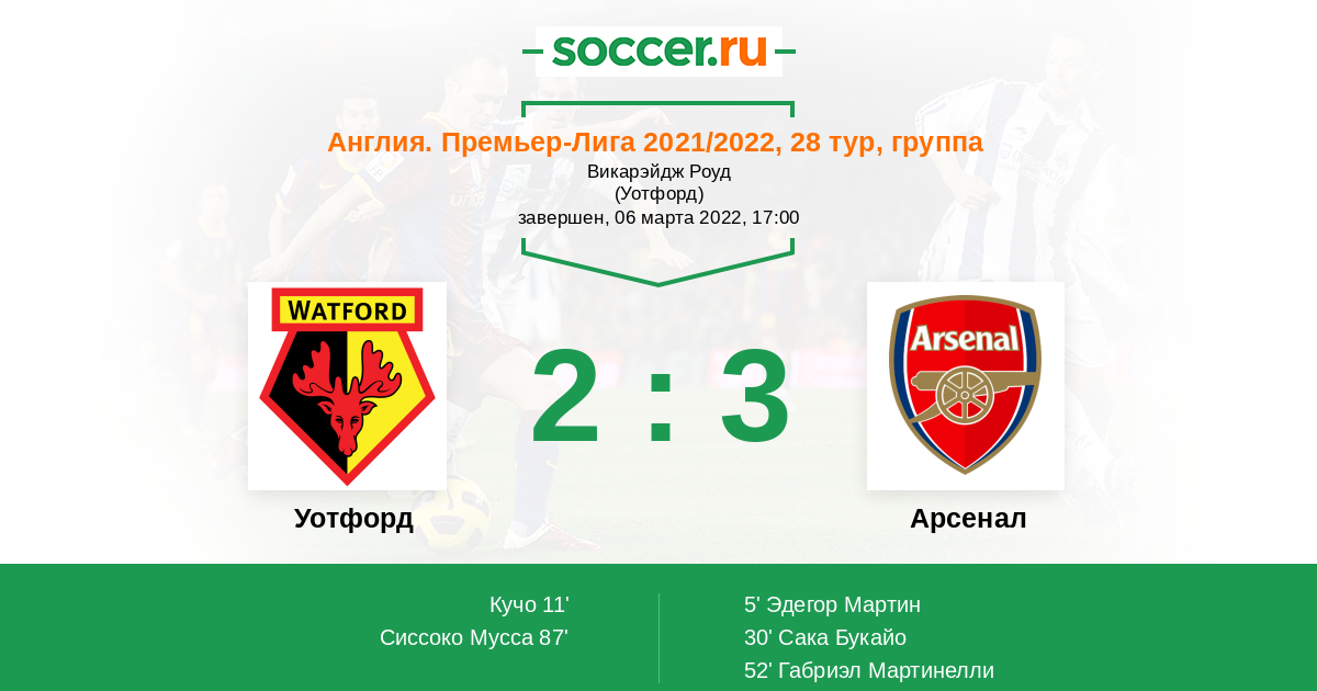 В матче встречающихся сегодня в английской Премьер-Лиге команд Уотфорд и Арсенал рискну поставить на победу гостей потому, как они располагаются выше в турнирной таблице, плюс активнее атакуют и надёжнее обороняются.