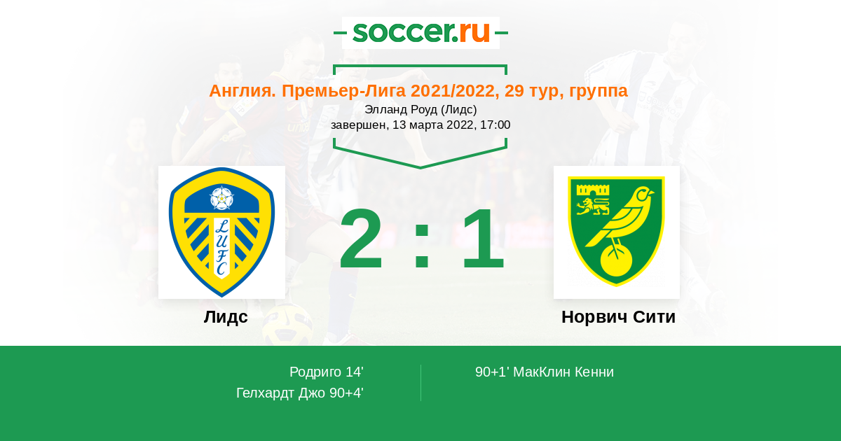 В матче встречающихся сегодня в английской Премьер-Лиге команд Лидс и Норвич Сити рискну поставить на победу хозяев потому, как они располагаются выше в турнирной таблице, активнее атакуют и надёжнее обороняются.