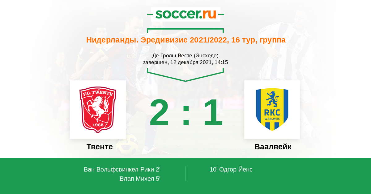 Твенте в этом сезоне совсем неплох, даже борется за места в Еврокубках. Ваалвейк на выезде играет строго на ничью, так что им не победить. Ожидаю минимальную победу Твенте дома, наверное 1-0.