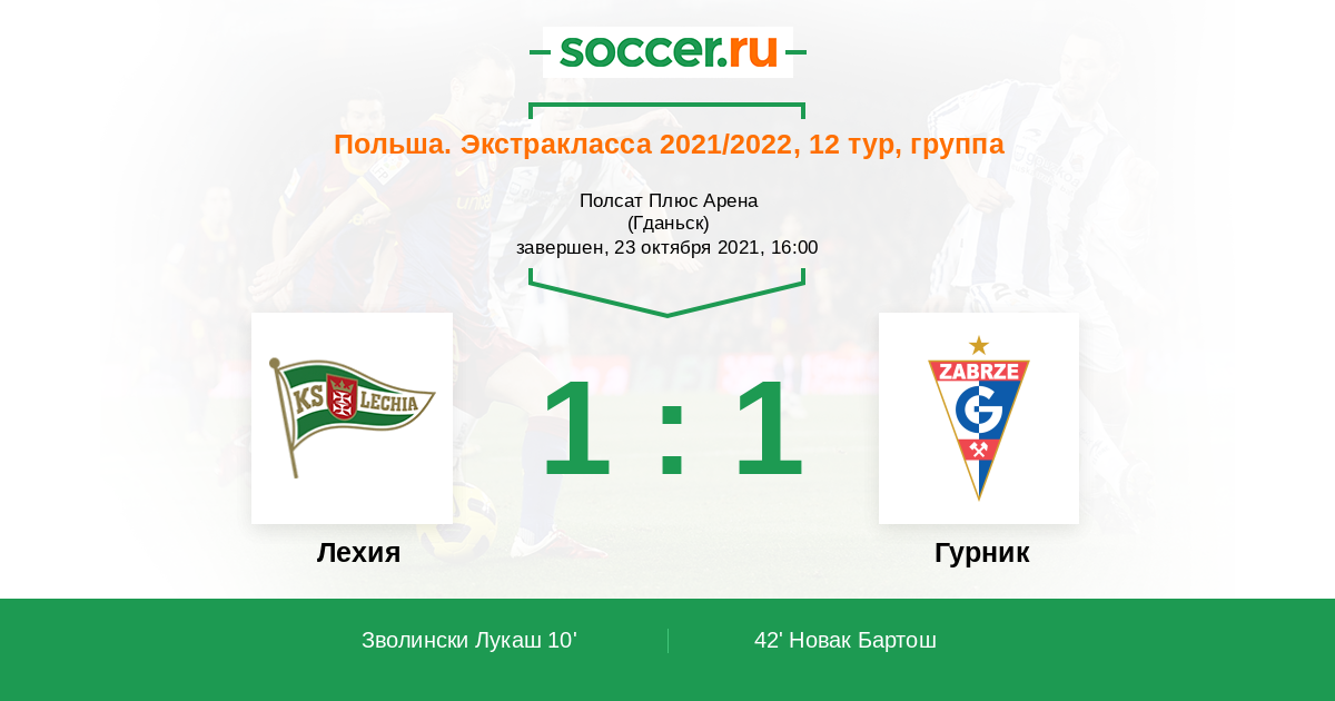 Победа Лехии или ничья.