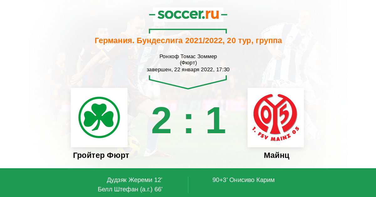 Гройтер Фюрт отчаянно бьется за выживания цепляясь за очки и не проигрывает уже 3 матча подряд но то все были игры с аутсайдерами а Майнц соперник более высокого уровня и не проиграть ему будет чрезвычайно сложно.