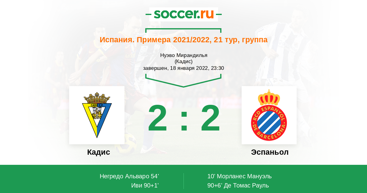 Кадис занимает предпоследнее место в Ла лиге и должен начать набирать очки чтобы избежать вылета. Домашний матч с Эспаньолом отличная возможность это сделать ведь Эспаньол очень плохо играет на выезде.