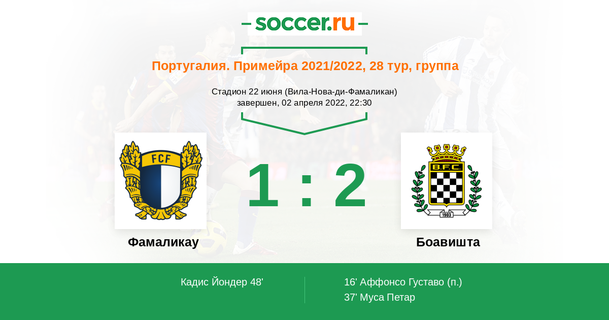 Стадион Стадион 22 июня (Вила-Нова-ди-Фамаликан), зрителей: 4246