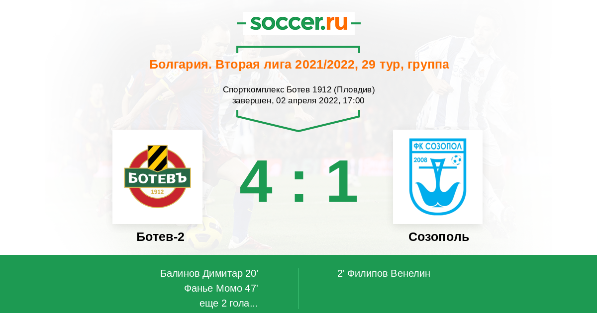 Матчи Болгария. Вторая лига 2021/2022