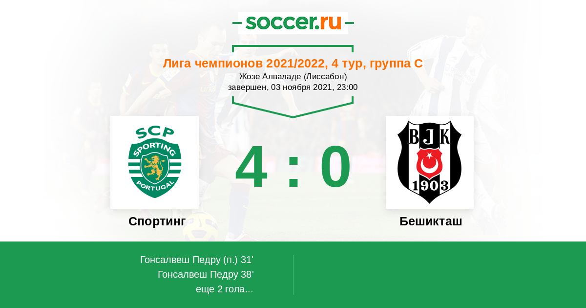 Вот и Спортинг берёт свои три очка, которые позволят Португалии уйти в отрыв от России в таблице коэффициентов УЕФА. Наконец-то Спортинг взял чемпионат Португалии и попал в Лигу Чемпионов УЕФА, как победитель Примейры. А вот Бешикташ показывает уровень чемпионата Турции, ведь они выиграли чемпионат своей страны. В итоге, Спортинг скорее всего пройдёт в плей-офф Лиги Европы. А может и в плей-офф Лиги Чемпионов УЕФА. Поживем увидим, как говорится.