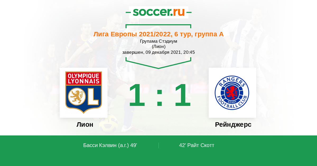 Оба клуба обеспечили себе участие весной в матчах за Кубок в Лиге европы, поэтому в этом матче серьёзной зарубы не будет, но Лион, воспользовавшись преимуществом своего поля победит шотландский Рейнджерс.