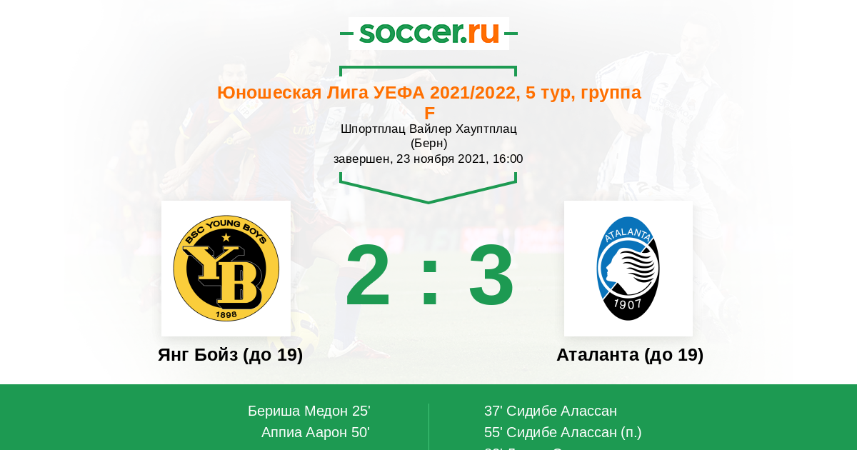 Матчи Юношеская Лига УЕФА 2021/2022