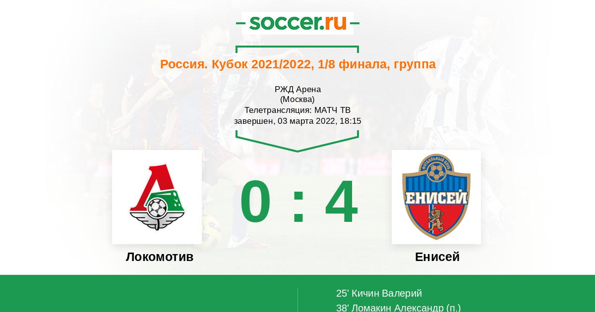 После первого тайма фаворит совсем другой этого матча, Локомотив сам виноват в том что проигрывает 0-2. Когда команда имела три момента в начали матча в которых не забили, но получили в свои ворота ответных два гола. Может что-то получиться изменить хозяевам во втором тайме, но что-то вериться с трудом с такой реализацией у Локомотива. Но а Енисей молодцы большой волной накрыли Локомотив пустив их под откос в первом тайме, найдут ли в себе силы и возможности хозяева поля, чтобы настроить состав и изменить результат матча во втором тайме. Удачи