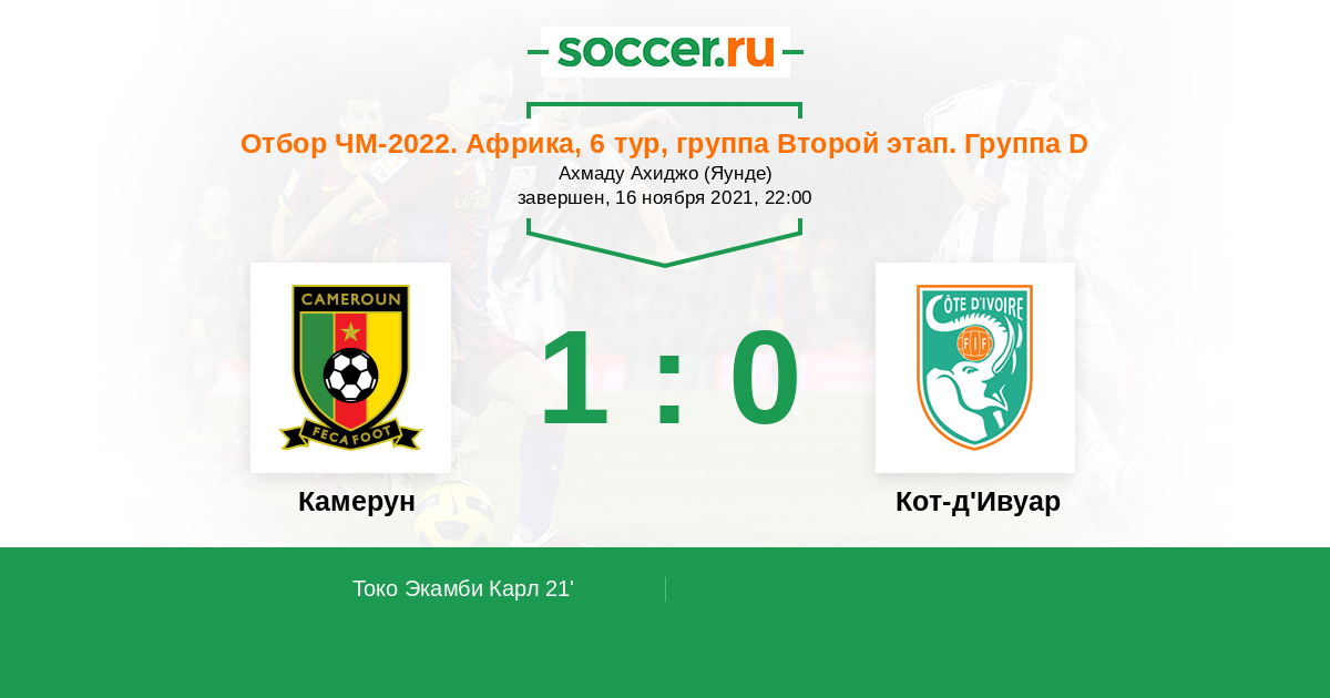 Обе команды ведут борьбу между собой за выход в следующую стадию отбора на чемпионат мира среди африканских стран. У сборной Камеруна преимущество своего поля, а у ивуарийцев преимущество в очках