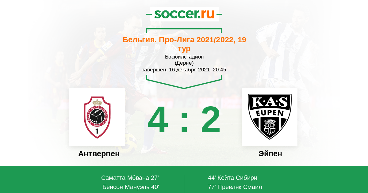 Почему такой прогноз? Антверпен находится в лидирующей группе и ведёт борьбу за попадание в еврокубки. Эйпен - середняк, уступающий хозяевам в классе. К тому же Эйпен плохо играет в гостях.
