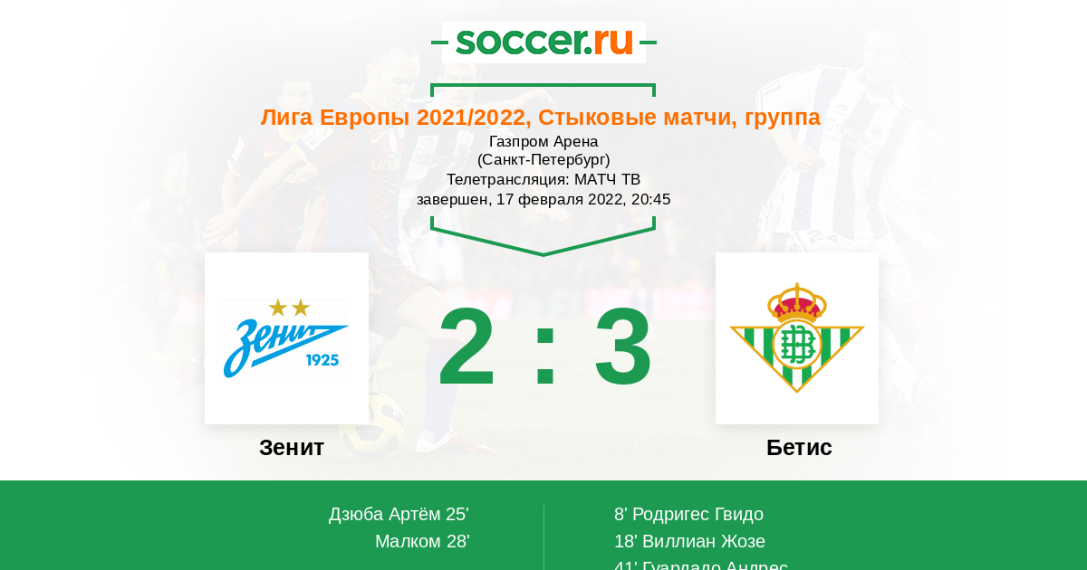 Достойное поражение Зенита из Санкт-Петербурга и достойная победа Реал Бетиса из Севильи.