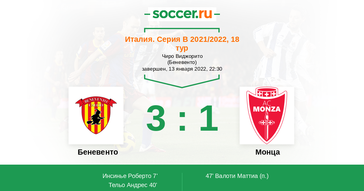 В этом матче между командами Беневенто и Монца ожидается результативная игра. Команды будут бороться за возможность прямого попадания в лигу выше, а для этого нужно продолжать набирать очки. Прогноз на этот матч, обе команды забьют. Удачи