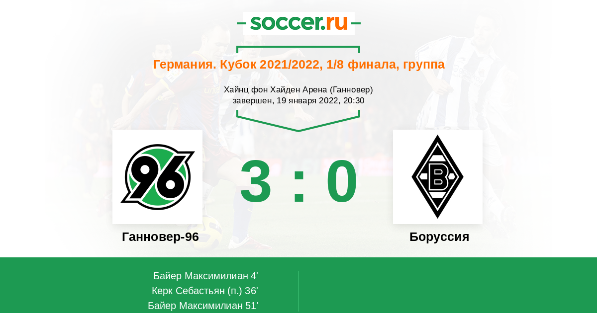 Я думаю что в этом противостоянии более чем явным фаворитом на победу является команда гостей Боруссия. Игра на кубок Германии где выбыли уже команды претенденты Бавария и Боруссия Дортмунд, хороший стимул для победы над командой из второй Бундеслиги Ганновером .