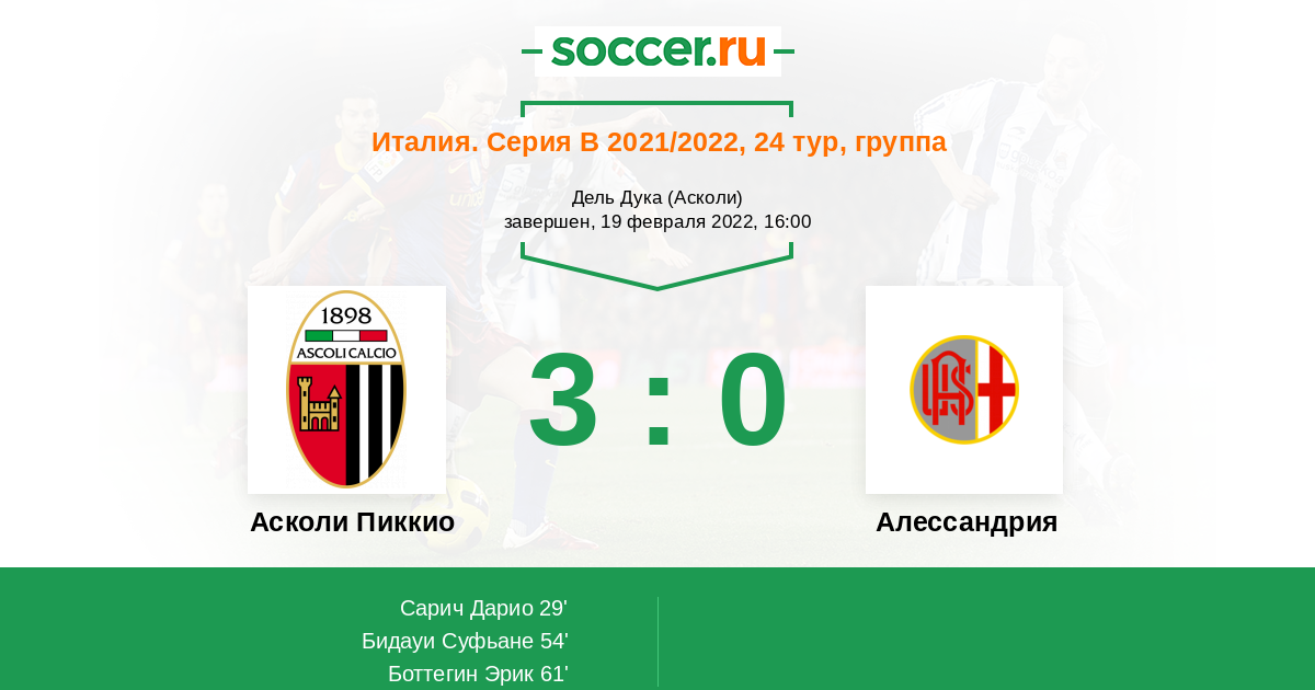 Асколи стоит выше в турнирной таблице чем гости. Хозяева на данный момент выглядят сильнее и поэтому будут играть только на победу. Алессандрия уйдет в глухую оборону, взломать которую будет сложно, но можно.