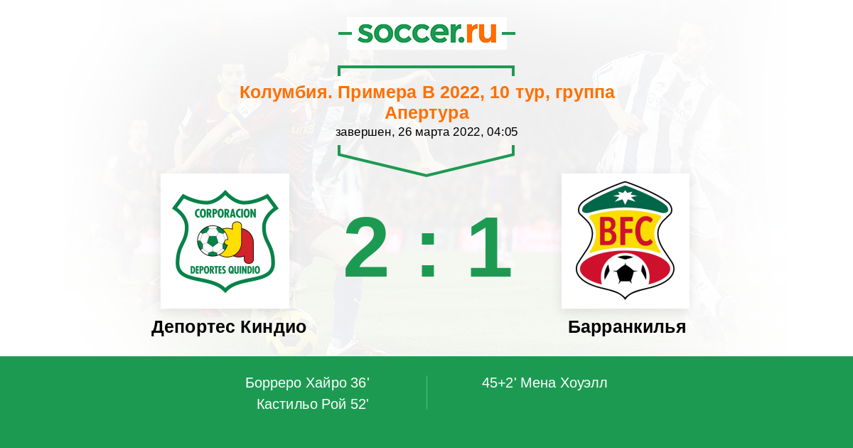Матчи Колумбия. Примера B 2022