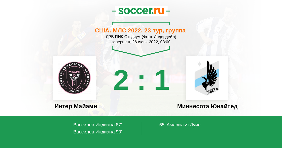 Я думаю что в этом противостоянии более чем явного фаворита на победу нет . Небольшое преимущество отдам команде хозяев поля Интер Майами . Но и команда гостей Миннесота Юнайтед должна будет показать зубы и забить свой гол . Победа хозяев поля или ничья.