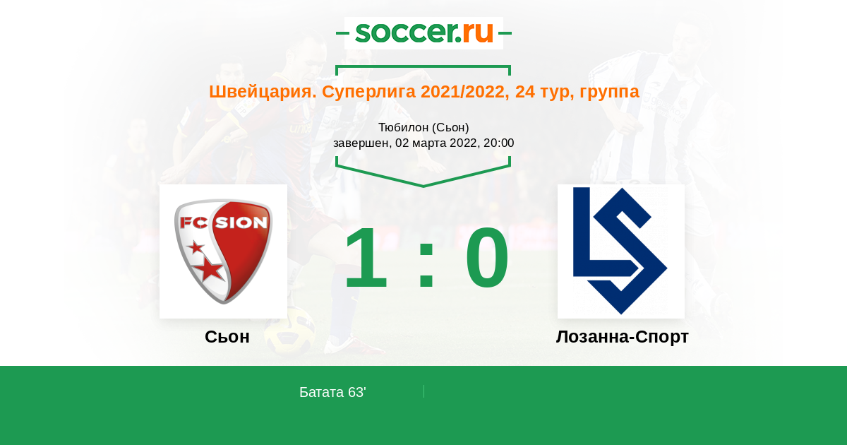 Я думаю что в этом противостоянии более чем явным фаворитом на победу является команда хозяев поля Сьон. Команда гостей Лозанна - Спорт является откровенным аутсайдером чемпионата Швейцарии и замыкает турнирную таблицу.