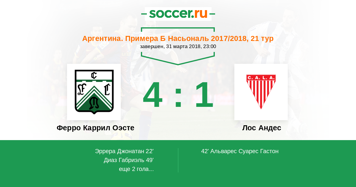 Матчи Аргентина. Примера Б Насьональ 2017/2018