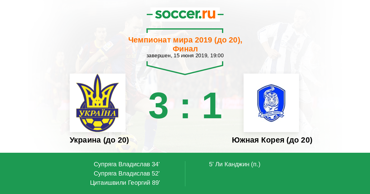 Украина (до 20) - Южная Корея (до 20)