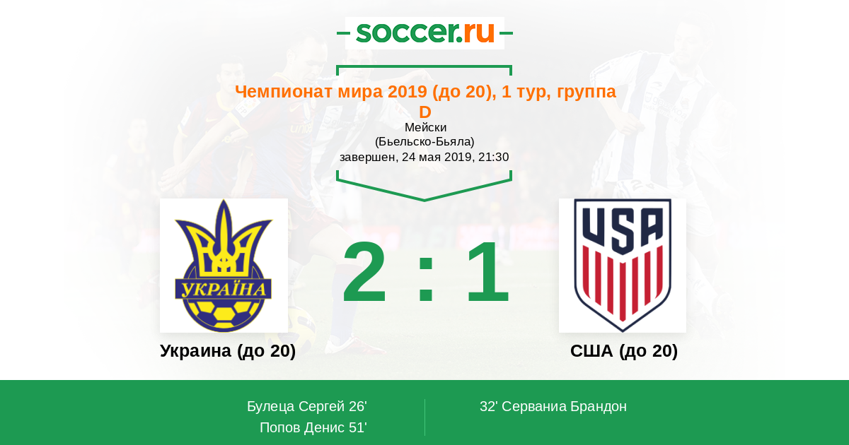 Матчи Чемпионат мира 2019 (до 20)