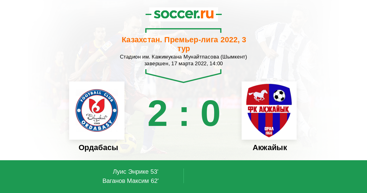 В матче встречающихся в казахстанской Премьер-лиге команд Ордабасы и Акжайык рискну поставить на победу хозяев потому, как по итогам прошлого года их турнирные показатели были выше соперников, плюс играют дома.