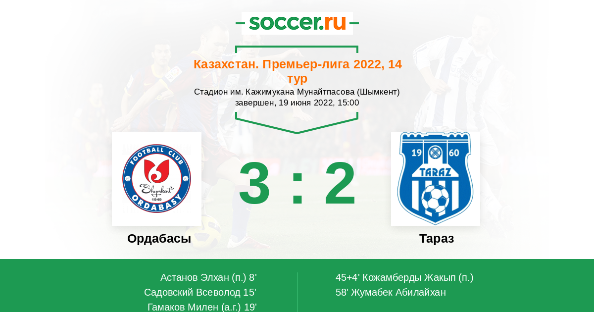 В матче встречающихся сегодня в казахстанской Премьер-лиге команд Ордабасы и Тараз рискну предположить победу хозяев потому, как на их стороне фактор своего поля плюс жажда реванша за поражение этой весной.