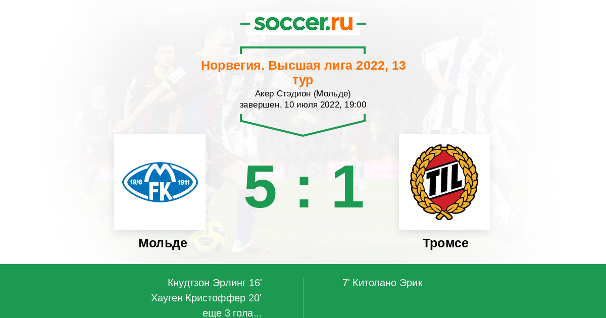 Мельде как всегда в последние годы один из главных претендентов на чемпионский титул. Сегодня Мельде принимает команду из-за Полярного круга-Тромсе. Матчи между этими командами за редким исключением проходили интересно и с забитыми голами с обеих сторон. Последний раз Тромсе выиграл в Мельде в далеком 2010 году, когда эта команда была ещё обычным середнячком чемпионата Норвегии. Но сейчас Мельде гранд в Норвегии и о нём наслышаны и в Европе. Так что от этого матча ждём интересного и результативного футбола.