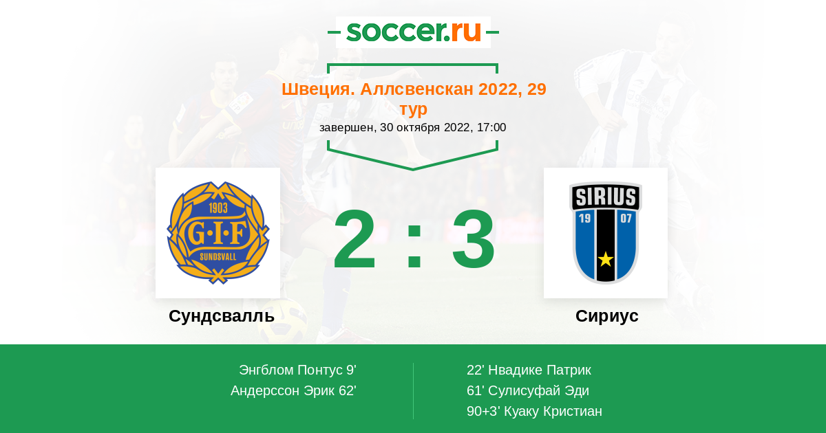 Матчи Швеция. Аллсвенскан 2022