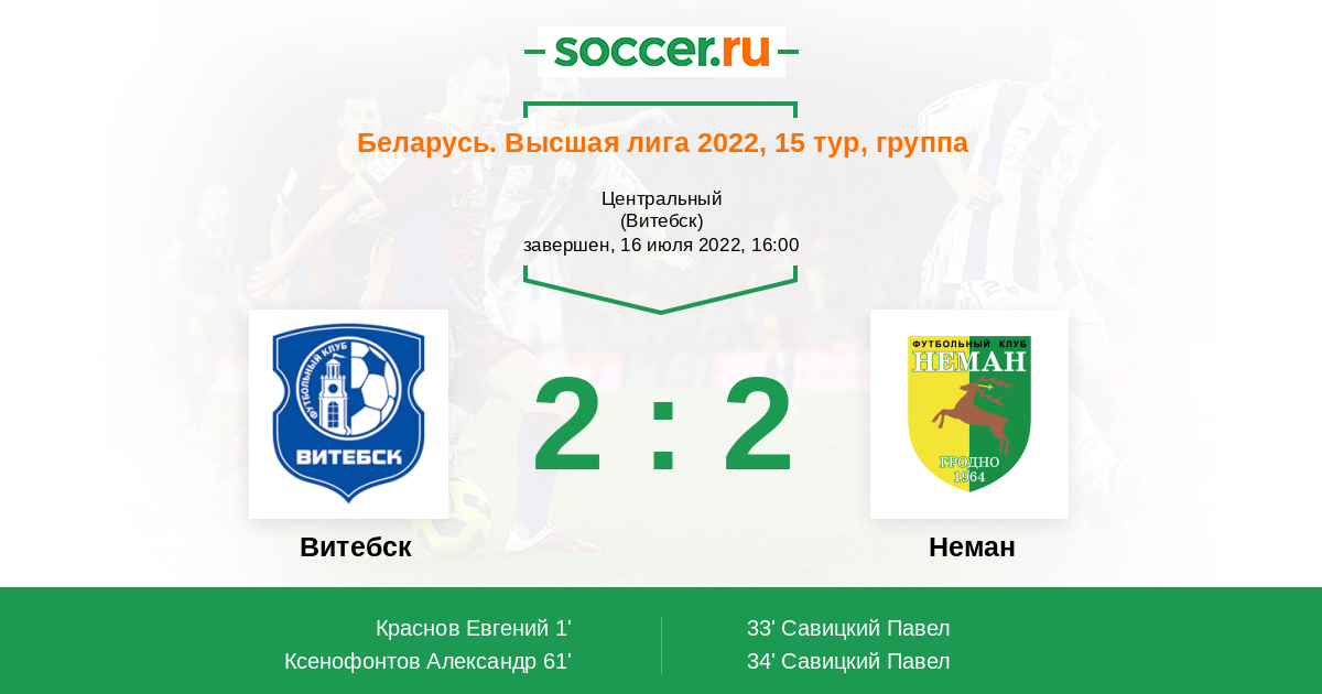 Я думаю что в этом противостоянии более чем явного фаворита на победу нет . Обе команды не блещут своей игрой. Команда гостей Неман в гостевых матчах одержала всего одну победу, тоже самое команда хозяев поля у себя в родных стенах одержала тоже одну победу. Скорее всего ожидается ничья.