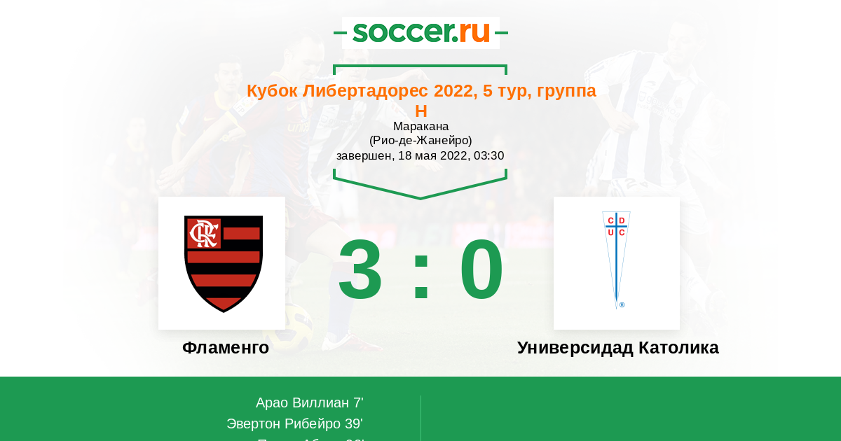 Хозяева выиграют и обе команды забьют . Фламенго должен выиграть , чтоб обеспечить себе первое место в группе Н . А Универсидад Католика захочет побороться за второе место. Поэтому тоже забьют, возможно. Может сыграют 3-1 .