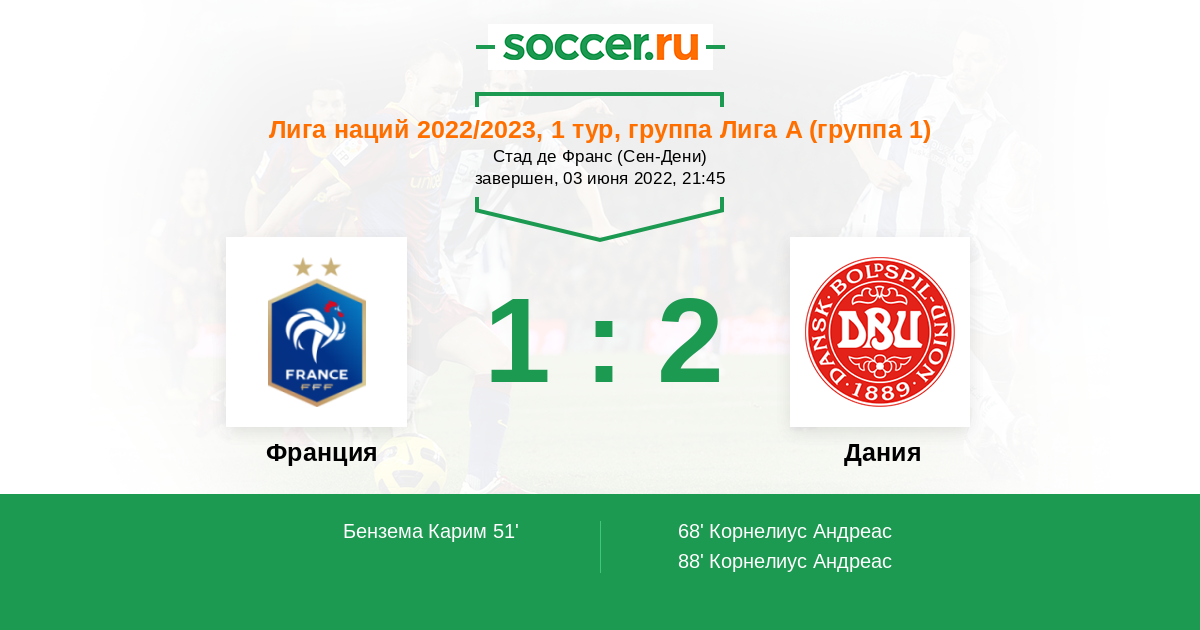Плачевно как-то смотрится сборная Франции. Молодёжь Дании пока переигрывает чемпионов мира, очень грамотно. Кстати и моментов острых имеет больше чем у французов. Посмотрим что будет в раздевалке, а потом на поле. Ждём второй тайм.